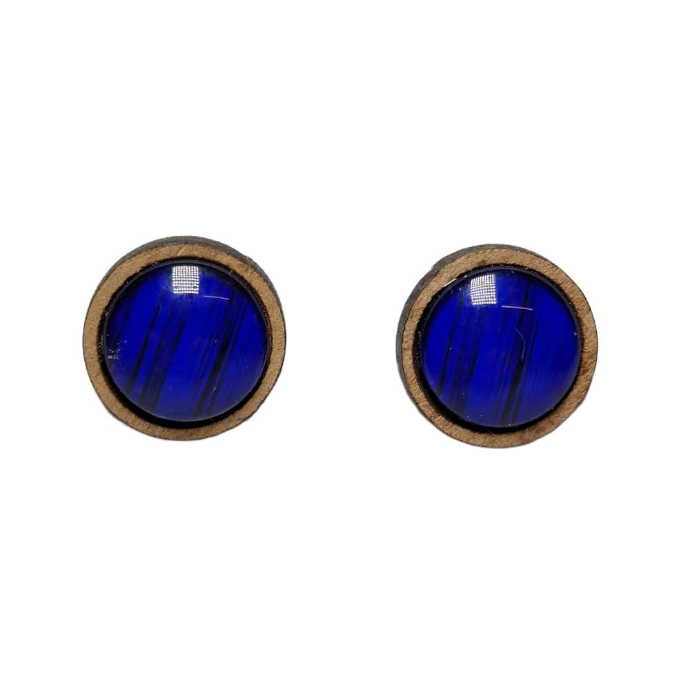 Izdelani so iz kakovostnega naravnega lesa, ki zagotavlja lahkotnost in udobje pri nošenju. Les je obdelan tako, da ohranja svojo naravno strukturo, medtem ko barvni sloj poskrbi za intenziven modri odtenek. Ta kombinacija daje uhanom unikatno estetiko, kjer se toplina naravnega materiala združi s sodobnim, svežim videzom. 🌿💙