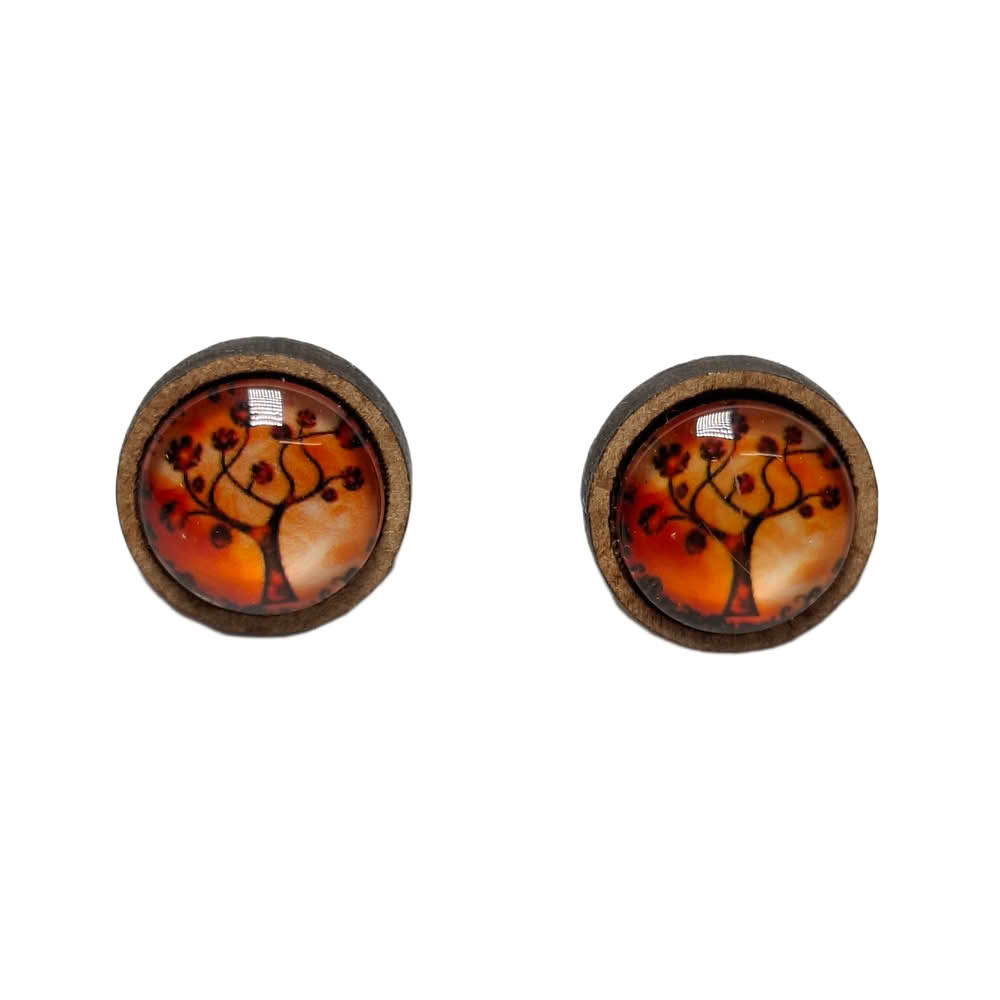 Središče uhanov krasi motiv oranžnega drevesa, ki simbolizira rast, energijo in vitalnost. Oranžna barva prinaša pozitivno energijo in veselje, medtem ko oblika drevesa dodaja naraven in eleganten pridih.